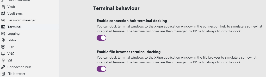 On Windows, you can now make use of docked terminal windows right inside XPipe. This works for basically all terminals on Windows, meaning that you can achieve almost any combination of tools.
